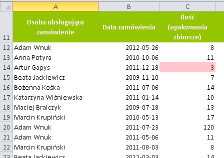 Mechanizm Poprawność danych pozwala zdefiniować treść komunikatu, który jest wyświetlany użytkownikowi po kliknięciu na komórkę: