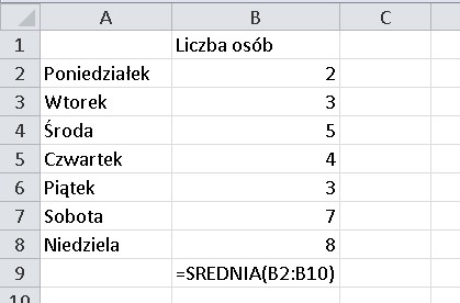Która z formuł policzy średnią wartość dla liczb dotyczących soboty i niedzieli? Zaznacz wszystkie poprawne odpowiedzi.